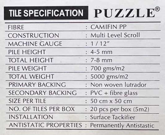 Specifitications puzzle carpet indonesia